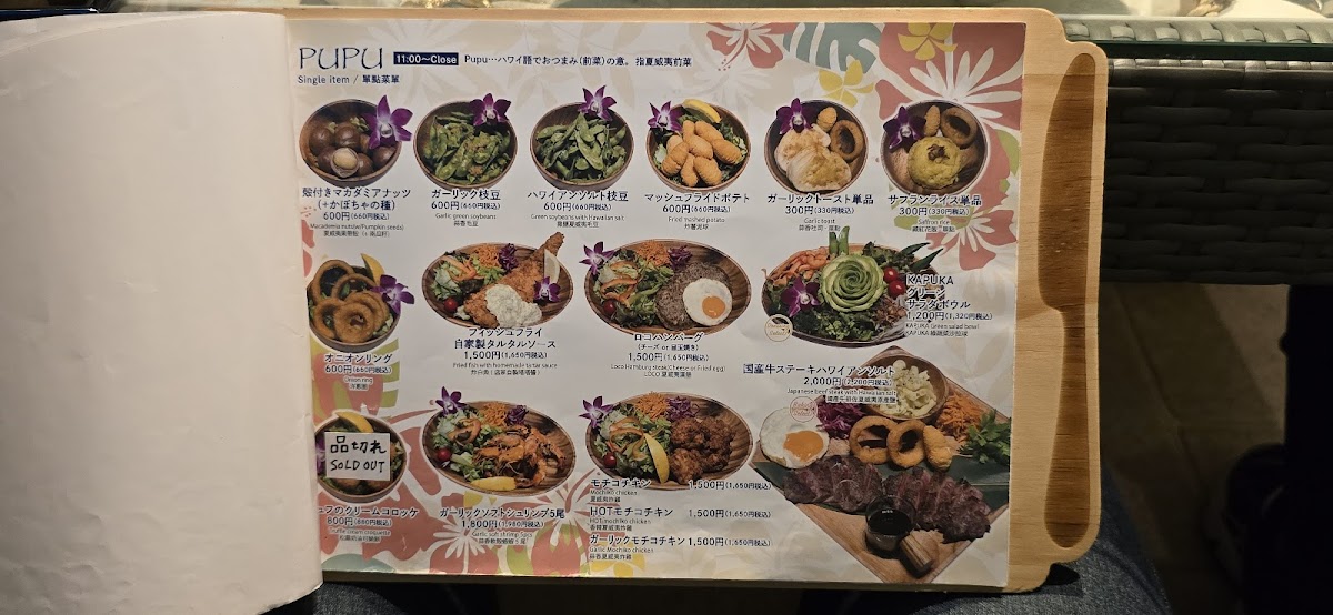 Welcome to Hawaiian cafe KAPUKA, a hidden gem in Chatan, Japan, where the spirit of Hawaii resonates through a vibrant menu. The cafe offers a delightful array of beverages, from their refreshing Loco Blue Hawaii cocktail to cozy choices like Hot Almond Latte and a selection of aromatic teas, ensuring there's something for everyone.
